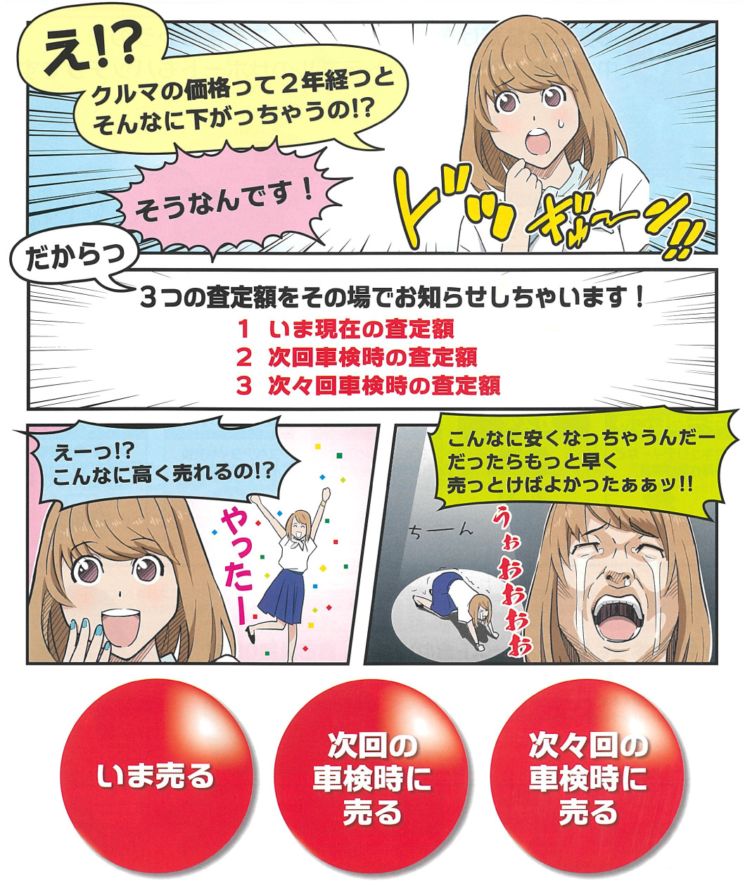 お客様のおクルマの下取や買取時には、お客様のご希望に合わせて3つのプランから売却プランを選べるようになっています。